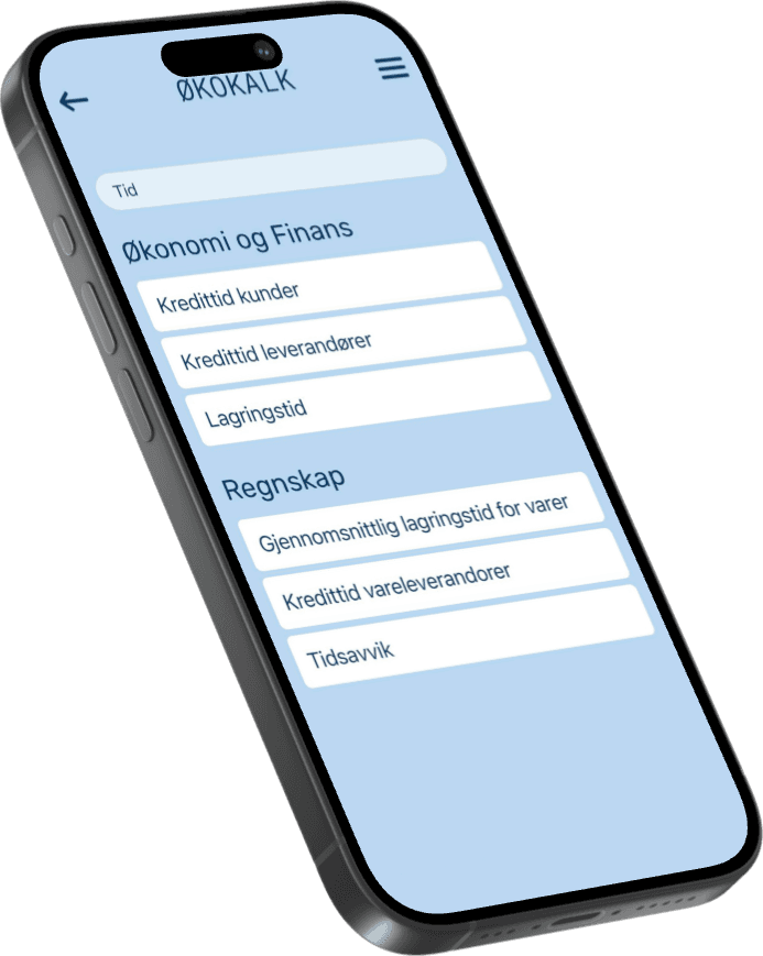 ØkoKalk er den perfekte assistent for deg som studerer økonomi. Eller bare trenger å vite formelen for ulike økonomiske termer. Her har du en enkel oversikt alle formlene man trenger innen fagene Økonomi, Finans og Regnskap i en søkbar liste. Man kan fylle inn tall i stedet for ordene i formelen for å regne ut resultatet. Enkelte formler kan regnes ut gradvis gjennom å trykke på det lille blå kalkulator-tegnet inne i formelen. I tillegg har vi laget en morsom quiz så man kan øver for å bli en råtass på formler!